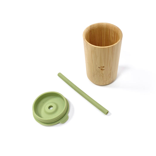 Olive Green Bamboo Cup with Lid and Straw