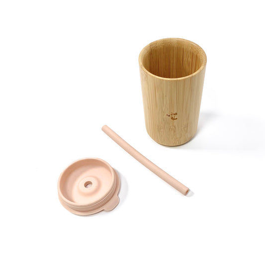 Peachy Pink Bamboo Cup with Lid and Straw