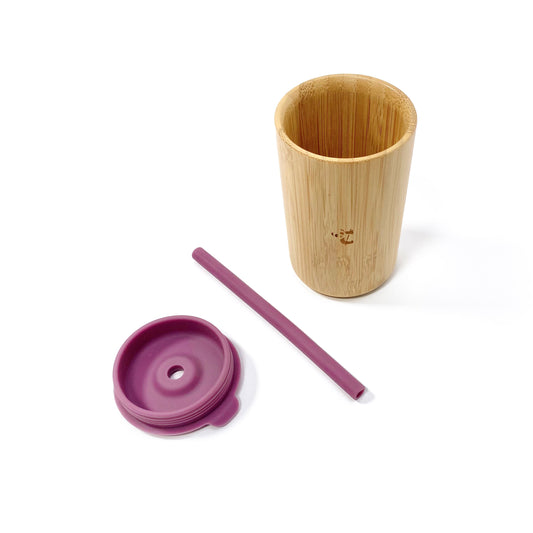 Plum Purple Bamboo Cup with Lid and Straw