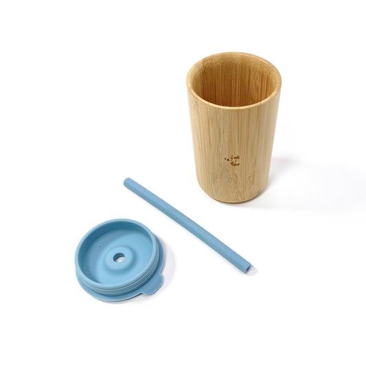 Sky Blue Bamboo Cup with Lid and Straw