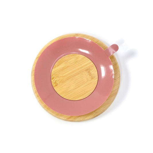 Blush Pink Bamboo Suction Bowl with Cutlery