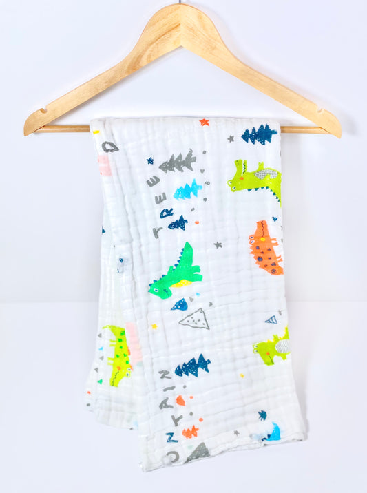 Dinosaur Crocodile Muslin Swaddle Blanket