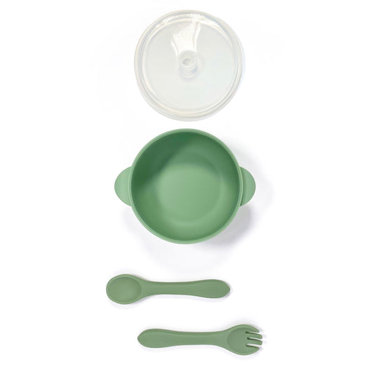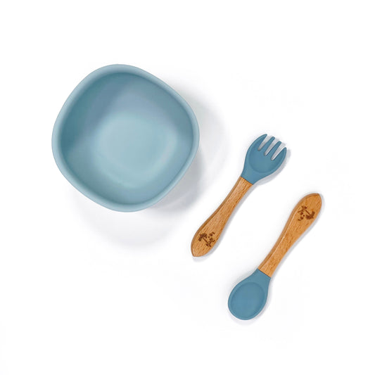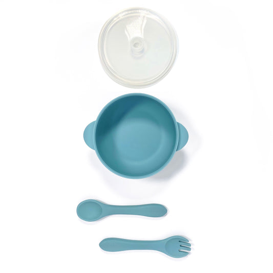 Sky Blue Silicone Bowl with Lid and Cutlery