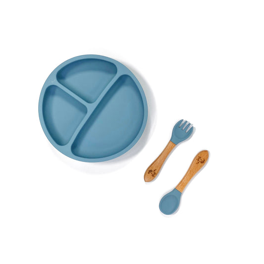 Ocean Blue Silicone Section Plate and Cutlery Set