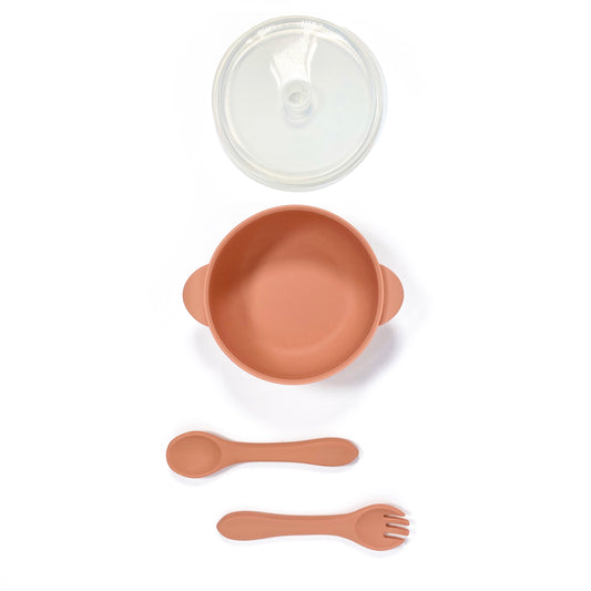 Sunset Orange Silicone Bowl with Lid and Cutlery