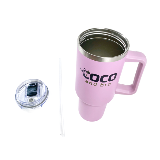 Candy Floss Pink Insulated Tumbler Travel Mug with Lid and Handle