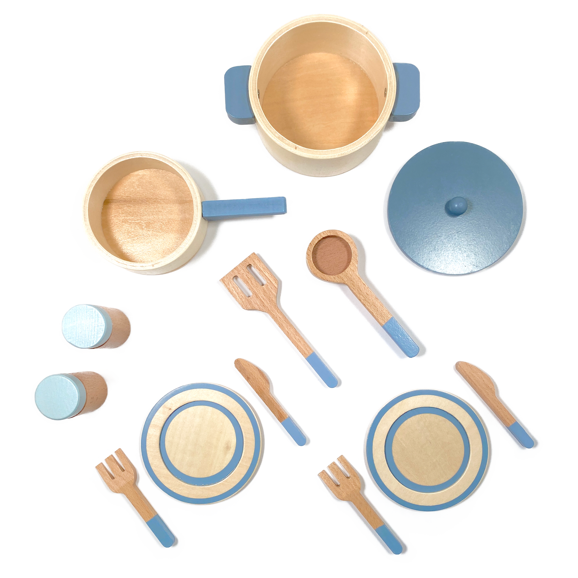 Wooden Cooking Set – 13-Piece Pretend Play Kitchen Set (Ages 3–6)